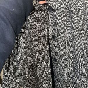 Keywords: Leslie Fay, womens coat, tweed jacket, herringbone, black and white, button front, medium size, vintage coat, retro style, classic outerwear, ladies jacket, medium coat