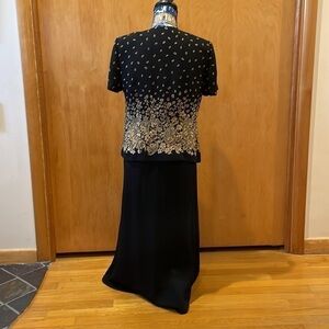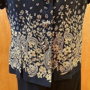 BEAUTIFUL vintage dress circa 1990s. Two piece dress. The top has shoulder pads and 5 decorative button closure. The skirt has a stretchy waist band.