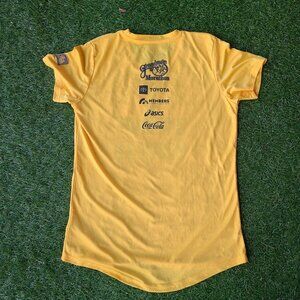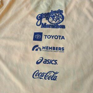 Bright yellow finisher’s tee from the 48th Annual Grandma’s Marathon in Duluth, Minnesota (2024). Features a bold front graphic with lighthouse, trees, and rainbow design, plus sponsor logos on the back. Lightweight, breathable performance fabric — works well for running, training, or casual wear.
