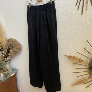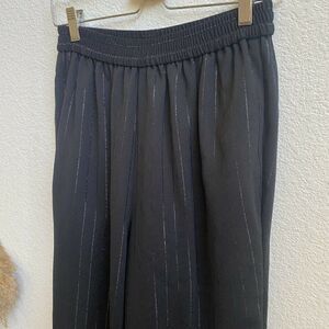 Leslie Fay sportswear Vintage Wide Leg Black & Silver Pinstripe Pull On Pants