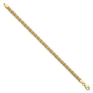 Elevate your accessory game with Leslie's 14K Gold Polished Byzantine Bracelet. Made in Turkey, this exquisite piece of jewelry is crafted from high-quality 14K yellow gold, ensuring its longevity and durability. The bracelet measures 7 inches in length and features a 5mm chain width, making it perfect for everyday wear or special occasions. The lobster clasp adds a touch of elegance to the design, while the flat profile type and polished finish provide a sleek and modern look.