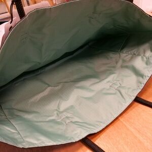 New, unused, with tags. Chic black tote with white polka dots outside and a gorgeous sage green interior. Durable and stylish. Ideal for daily use.