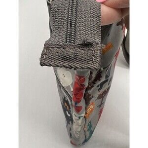 The bag has multiple features such as 4 credit card slots, lightweight design, and additional pockets for convenient organization. The lining color is black, and the bag is part of the Leaportsac 3 Zip Robot Print product line. This bag is perfect for travel, casual outings, or workwear. CALL OUT: At the end of the zipper strap it has come loose it can be fixed, it does not affect the zipper; see last photo! Item is clean! Thank you for stopping by!