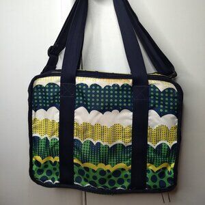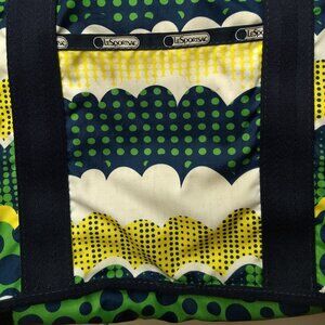 Lesportsac Zippered Laptop Bag Green Yellow Blue White Abstract Pattern School