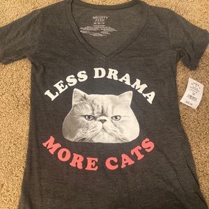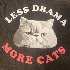 Fun โLess Drama More Catsโ tee. Charcoal gray. Size is XS but fits more like a small.
