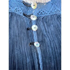Lestra Moja London blue top size small Coastal Button Sleeveless Boho Bohemian