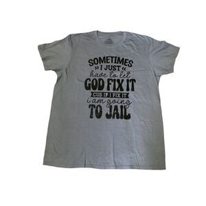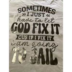 NWOT, Let God Fix It, gray tee with black graphics, tagged XL, see measurements for custom fit.
