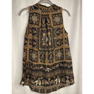 Let It Be - Women’s Sz Small Blouse - Sleeveless - Geometric/Elephant Print