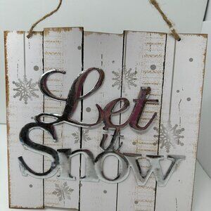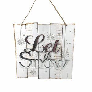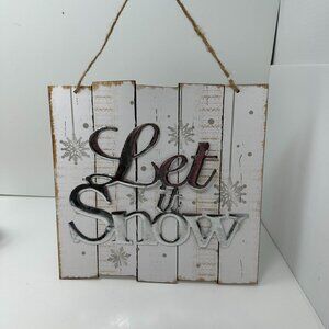 Let It Snow Decorative Hanging Wall Sign Rustic Rope Accent Winter Holiday Deco