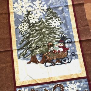 Let It Snow Quilt Panel FLANNEL Fabric Snowman Sleigh Ride Troy Corp Riverwood