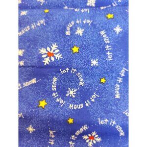 This listing includes two cut pieces of premium cotton fabric with a festive "Let It Snow" snowflake and star design on a vibrant blue background. The set features one piece measuring approximately 2/3 yards and another 3/4 yards, each with a standard width of 44 inches. Ideal for quilting, crafting, or seasonal sewing projects, this fabric is soft, versatile, and high-quality. The charming winter-themed print is perfect for creating holiday decor or gifts. All pieces are in new condition with no signs of wear or damage, ensuring an excellent addition to any sewing collection.