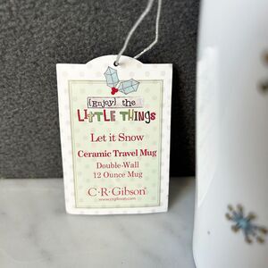 Let It Snow! Travel Mug with Lid Ceramic Double-Wall Coffee Cup 12 oz CR Gibson