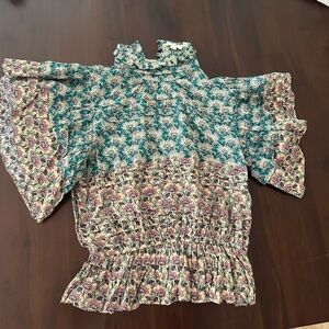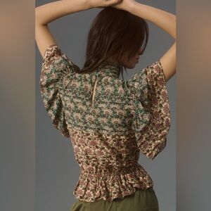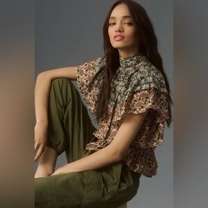 Let Me Be Anthropologie High-Neck Printed Peasant Blouse (T2)