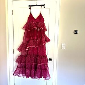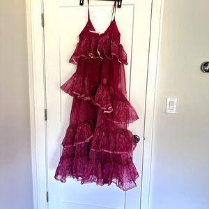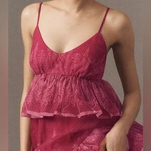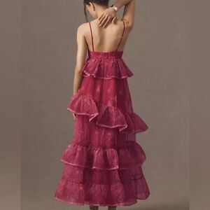 Let Me Be Anthropologie Tiered Sheer Sleeveless Ruffle Dress Pink XS