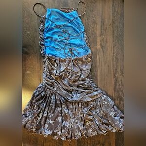 Let Me Be Floral Printed Backless Asymmetrical Bubble Hem Ruched Dress, Blue, Small