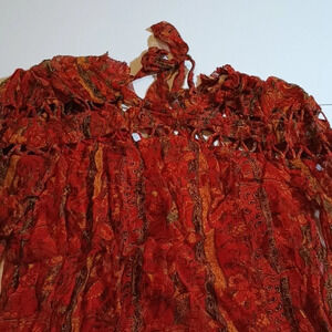 Let Me Be Rusty Orange Cut Out Sheer Lines Retro Blouse A25