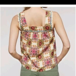 Let Me Be by Anthropologie Abstract Ruffled Tank Top Blouse Sz 10