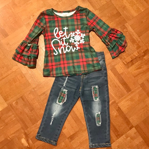 NWOT Let it Snow top and jeans set.