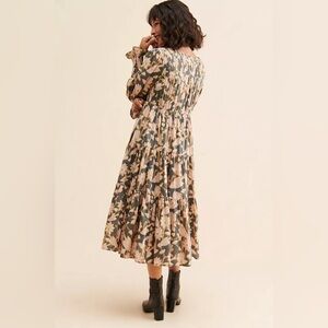Let me Be Waistless Anthropologie Floral Long Sleeve Midi Dress