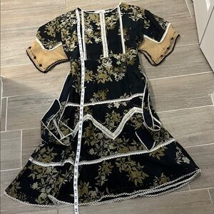 Let Me Be dress excellent condition! Full disclosure it has some beautiful beading, i don't see anything missing but there could be a few. I've checked it over. belted short sleeve, gorgeous dress! Tag is half off see pic. Says xs to me fits more like s/m
