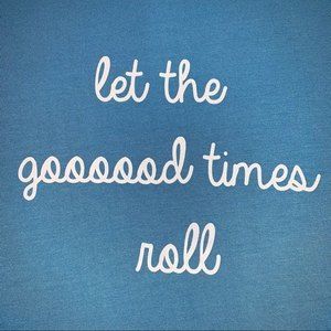 Beautiful baby blue with white script lettering - let the goooood times roll