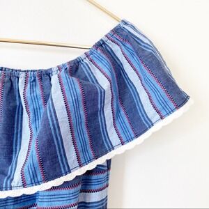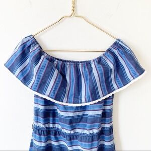 Letarte Blue Chambray Striped Off Shoulder Ruffle Sundress Coverup S