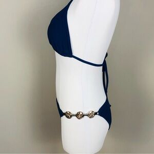 Letarte blue 2 pc string bikini triangle top tortoise shell embellishment