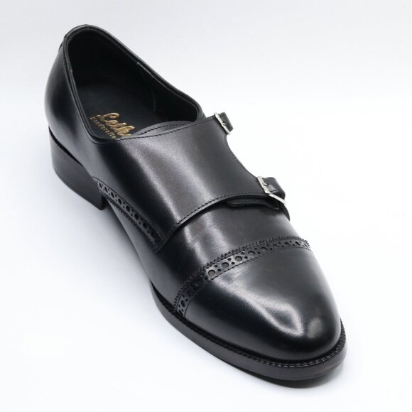 Lethato Handcrafted Men's Captoe Double Monk Strap Genuine Leather Modern