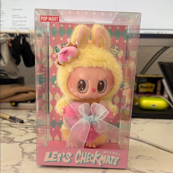 Pink and yellow unopened Let’s Checkmate Labubu! Selling to clean out house.
