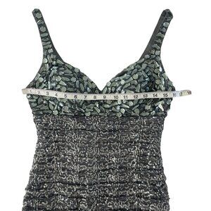 Let’s Fashion Beaded Sequin Mini Dress Gray Semi Formal Size M Style 5608