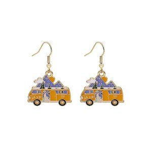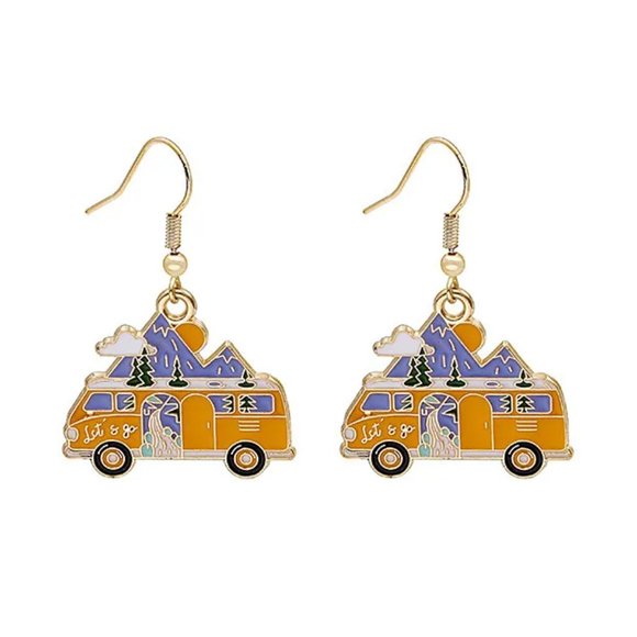 Let's Go Car Camping RV Vanlife Roadtrip Nomad Travel Dangle Earrings NEW