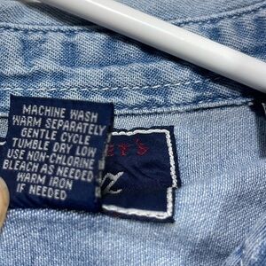 Let’s Quizz Again Noah’s ark button down short sleeve denim shirt. Women’s size L. 100% cotton. Good preowned condition. Please examine all photos carefully and refer to them for approximate measurements. Any questions please ask 😊