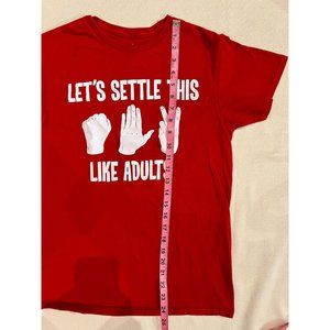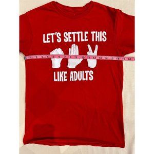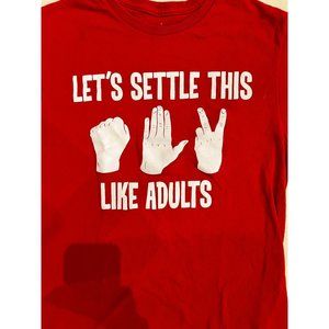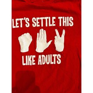 Let's Settle This Like Adults Rock Paper Scissors Graphic Red T-Shirt Crew Neck