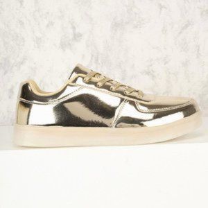 Let's Shine Forever Gold Mirror Metallic Low Top Lace Up Sneaker Flat. Size 7