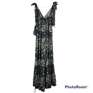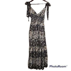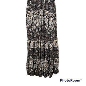 Let's Smock About It Black Floral Print Tiered Maxi Slip Dress