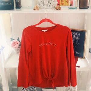 Super cute Long Sleeve Top, could be a lounging, running errands or pj top, very versatile and comfy. Adorable knot at the bottom. In great condition, only worn a handful of times. I’m 5’3 for reference.