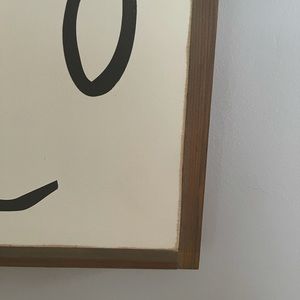 3 ft x 3 ft wood painted sign/picture/wall hanging cream and gray with gray washed wood frame/edge