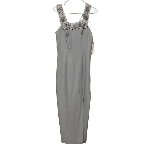 Let’s fashion Vintage Grey formal classy midi pencil floral dress
