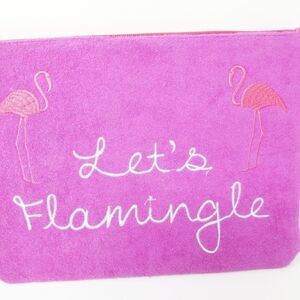 Large "Let's Flamingle wristlet bag by Mixit. Approximate measurements are 8" x 11".