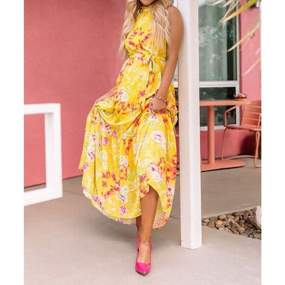 Yellow floral maxi dress