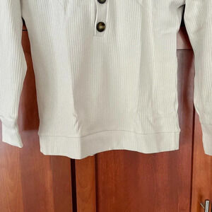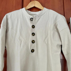Lett Kruger Henley Top Long Sleeve Ribbed Ecru Size XS NEW