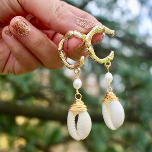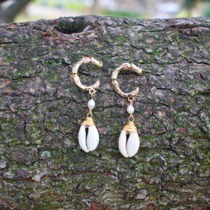 Letter C Shell Gold Metal Alphabet Drop Earrings