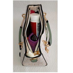 Green & Beige Handbag Faux Leather Handbag with Shoulder Strap Stylish & Functional 6 Pockets