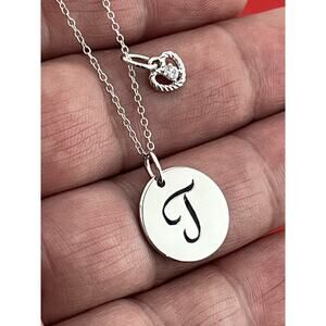 Letter J Sterling Silver 925 RJ Cz Heart Necklace