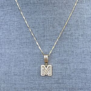 Letter "M" Iced Out Initial Pendant Gold Plated Necklace w/ CZ Rhinestones