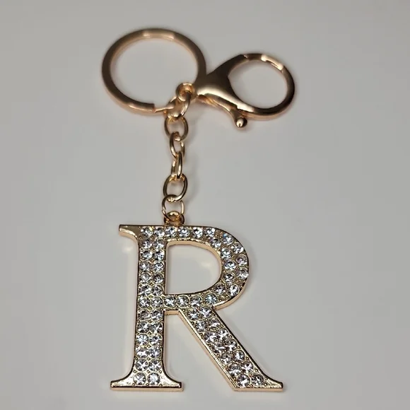 Letter R Initial R Alphabet R Rhinestone Gold Key Chain Bag Charm