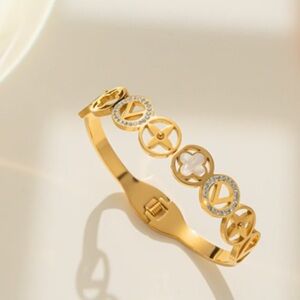 Letter Titanium Steel 18K Gold Plated Bangle GOLD