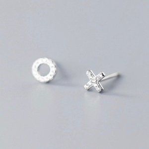 A pair of Letter X and O Asymmetry Small CZ Studs earrings