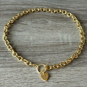 Letter M chain necklace in stainless steel 18k gold plated hardware