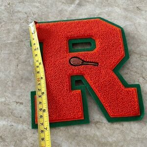 Find initial sweater letter. The initial R with a tennis racket. Phone accessory.